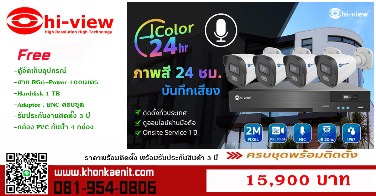 2. กล้องวงจรปิด 4 กล้อง ความละเอียด 2 MP ภาพสีตลอด 24 ชม บันทึกภาพและเสียง.,Adaptor 4 ตัว (เสียเปลี่ยนตัวใหม่ทันที)