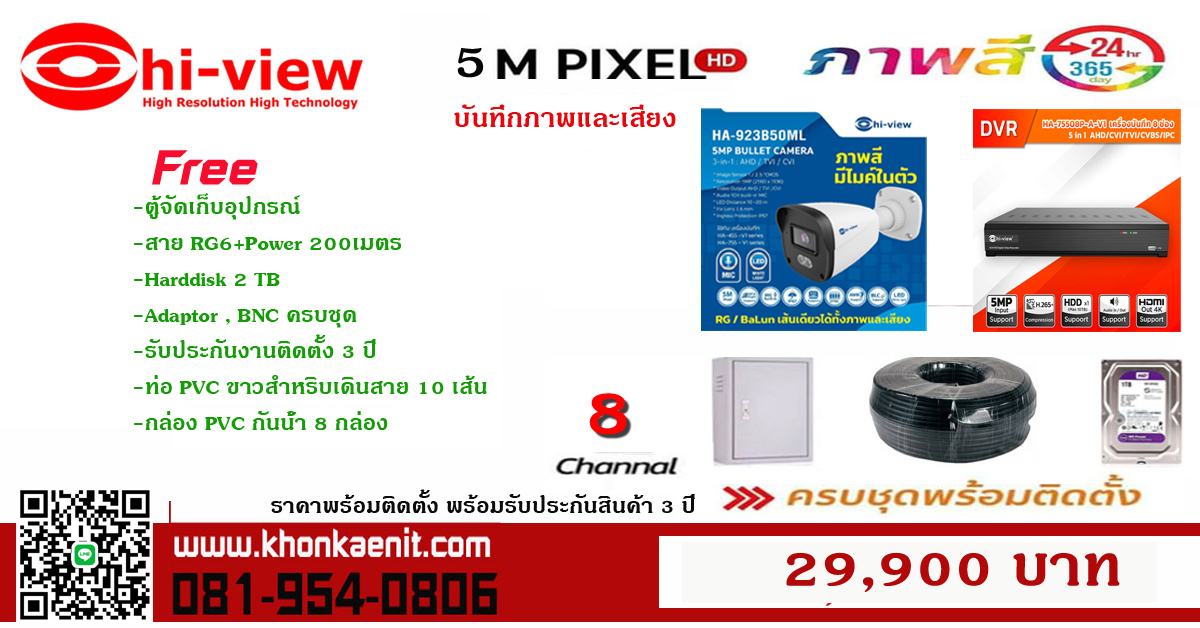 2. กล้องวงจรปิด 8 กล้อง ความละเอียด 5 MP ภาพสีตลอด 24 ชม บันทึกภาพและเสียง.,Adaptor 8 ตัว (เสียเปลี่ยนตัวใหม่ทันที)