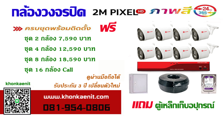 2. กล้องวงจรปิด 2,4,8,16 กล้อง ความละเอียด 2 MP ภาพสีตลอด 24 ชม พร้อม Adaptor (เสียเปลี่ยนตัวใหม่ทันที)